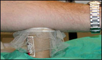 which the volunteers rest their arm for five minutes.